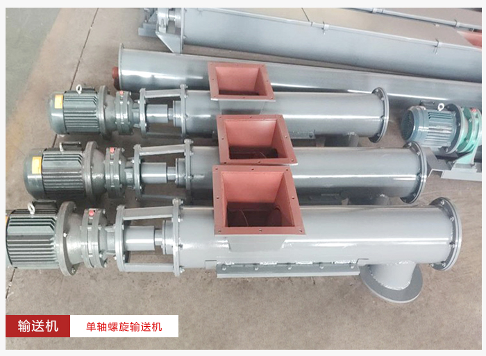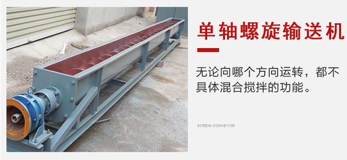 單軸螺旋輸送機無論向哪個方向運轉,都不具體混合攪拌的功能,當物料放入進料口時,會自動將物料轉動到中間,混合到一起。