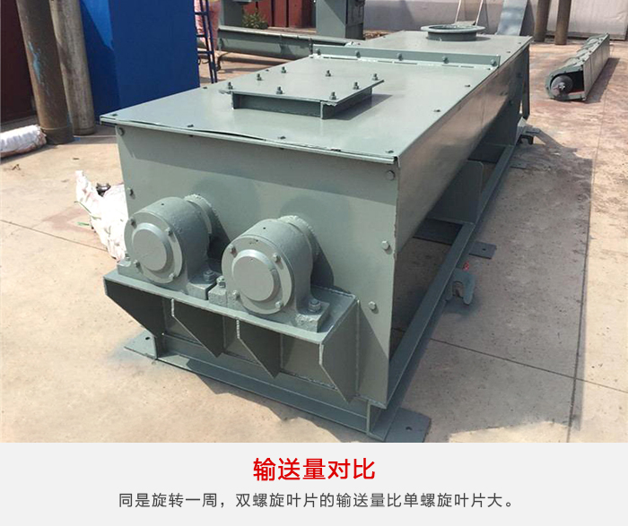 雙螺旋和單螺旋在同樣轉速下,因為雙螺旋葉片的螺旋角比單螺旋葉片高,因此雙螺旋葉片的輸送流量比單螺旋葉片大,同是旋轉一周,雙螺旋葉片的輸送量比單螺旋葉片大。