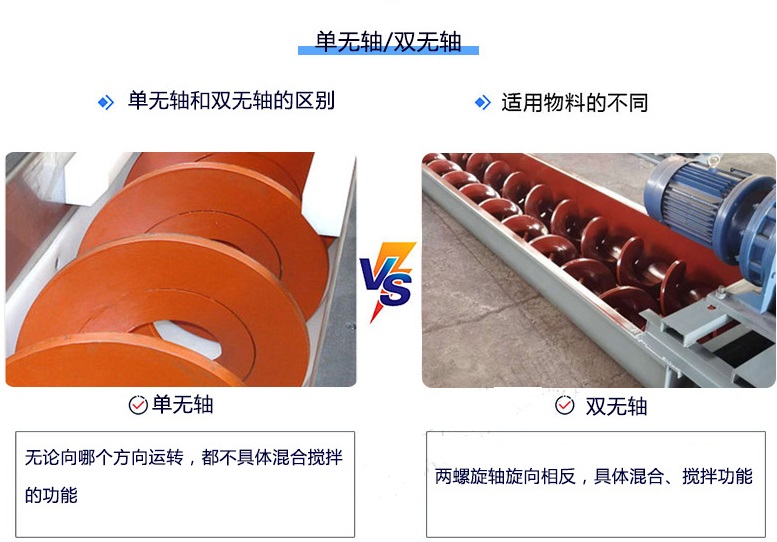 是指分別有兩個無軸螺桿的無軸螺旋輸送機,一根為左旋,另一根為右旋,在輸送物料的同時還具有混合、攪拌、粉碎等功能。